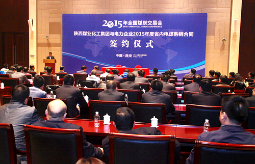 11月29日,在全國煤炭交易會(huì)上,舉行了陜西煤業(yè)化工集團(tuán)與省內(nèi)發(fā)電企業(yè)2015年度電煤購銷合同簽約儀式。運(yùn)銷集團(tuán)公司與陜西省關(guān)中地區(qū)十四家主力發(fā)電企業(yè)正式簽訂了2015年度煤炭購銷合同,共簽訂合同量1980萬噸,約占省內(nèi)發(fā)電企業(yè)全年需求量的50%。