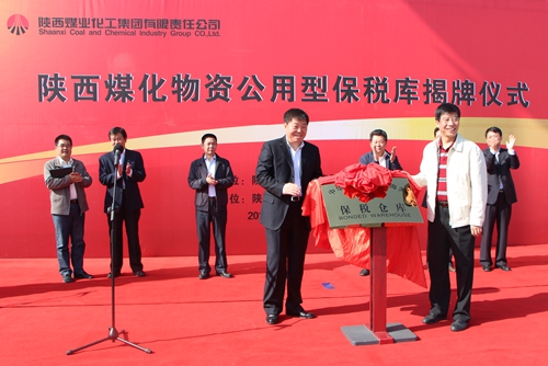 陜煤化集團(tuán)總經(jīng)理嚴(yán)廣勞和西安海關(guān)關(guān)長徐蔚葳共同為保稅庫揭牌