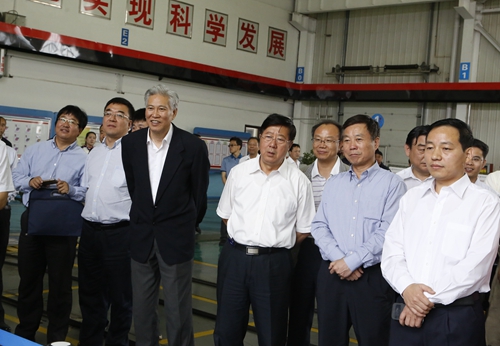 王顯政一行首先來到紅柳林礦業(yè)公司智能化綜采工作面地面集中控制室,現(xiàn)場觀看了集控室工作人員一鍵啟動工作面設(shè)備演示,詳細了解了該公司綜采成套裝備智能系統(tǒng)的運行情況和產(chǎn)生的效益,當(dāng)了解到該公司與天地科技公司聯(lián)合攻關(guān)的《煤炭綜采成套裝備智能系統(tǒng)》研究成果,已通過國家相關(guān)部委聯(lián)合驗收、達到國際領(lǐng)先水平時,王顯政表示了充分的肯定,并希望在全國其它煤礦推廣使用,為煤炭行業(yè)兩化深度融合型智能礦山建設(shè)做出貢獻。