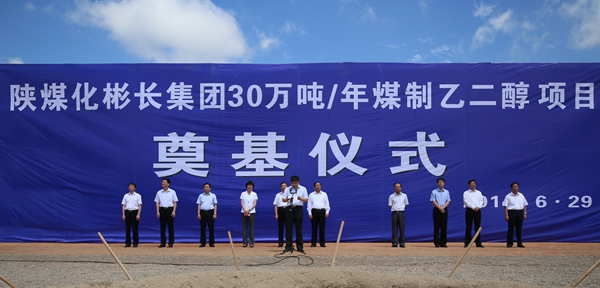 儀式上,彬長礦業(yè)公司總經(jīng)理李孝波首先簡要介紹該項目基本情況和發(fā)展遠(yuǎn)景。彬長30萬噸/年煤制乙二醇項目,屬陜西省重點項目,由彬長礦業(yè)負(fù)責(zé)實施。項目規(guī)劃總占地約60公頃,項目總投資約50億元,投資回收期約9年。該項目的建設(shè),符合國家、陜西省產(chǎn)業(yè)政策,符合陜煤化集團“以煤炭為基礎(chǔ)、以煤化工為主導(dǎo)”的發(fā)展戰(zhàn)略,該項目的順利實施,將對實現(xiàn)企業(yè)和地方產(chǎn)業(yè)結(jié)構(gòu)調(diào)整、優(yōu)化和升級,促進(jìn)陜西區(qū)域經(jīng)濟發(fā)展起到積極作用。