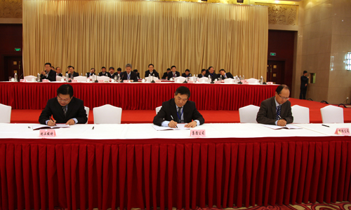 集團公司總經(jīng)理楊照乾代表集團與所屬各板塊公司簽訂2014年目標責任書