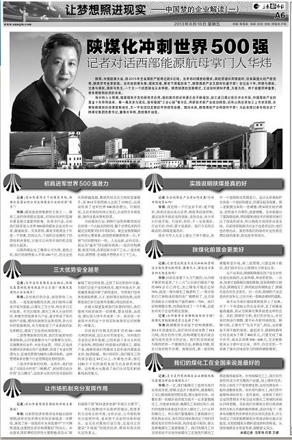 陜煤化沖刺世界500強記者對話西部能源航母掌門人華煒