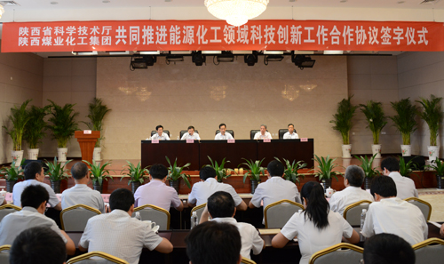 陜西省科技廳廳長李明遠(yuǎn)、副廳長安西印及科技廳相關(guān)部門負(fù)責(zé)人;陜煤化集團(tuán)董事長華煒,總經(jīng)理?xiàng)钫涨?,副總?jīng)理尚建選以及陜煤化技術(shù)研究院相關(guān)負(fù)責(zé)人參加了簽字儀式。簽字儀式由省科技廳副廳長安西印主持。