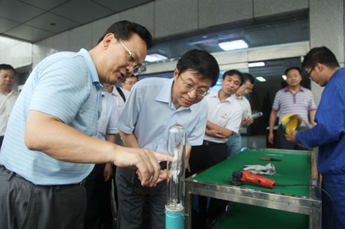 在集團(tuán)公司黨委副書(shū)記馬富元的陪同下深入黃陵礦業(yè)生產(chǎn)車(chē)間參觀