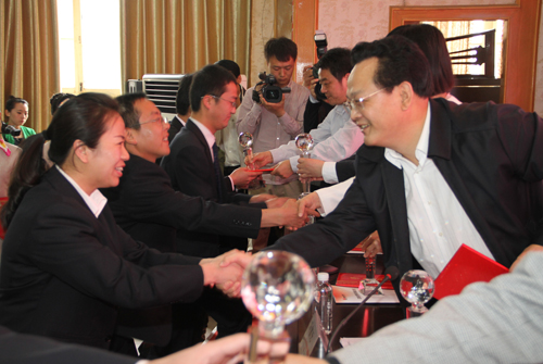 與會(huì)各領(lǐng)導(dǎo)為集團(tuán)公司第四屆“雙十佳”青年頒獎(jiǎng)