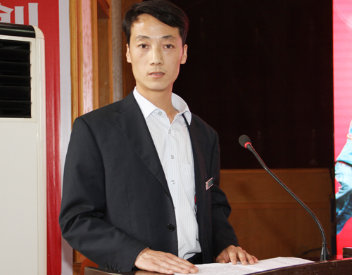 “雙十佳”青年代表蒲白建新煤化公司綜采隊(duì)班長(zhǎng)郭周峰宣讀倡議書(shū)