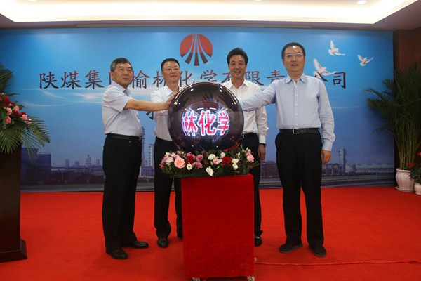 榆林市工商局為榆林化學(xué)公司正式授牌。戴征社、吳敏、楊照乾、李春臨啟動(dòng)了預(yù)示著旭日東升、蒸蒸日上的水晶球,水晶球呈現(xiàn)出“榆林化學(xué)奮勇起航”,寓意著榆林化學(xué)公司將攜手奮進(jìn)、團(tuán)結(jié)創(chuàng)新,站在新的起點(diǎn)上再創(chuàng)輝煌。