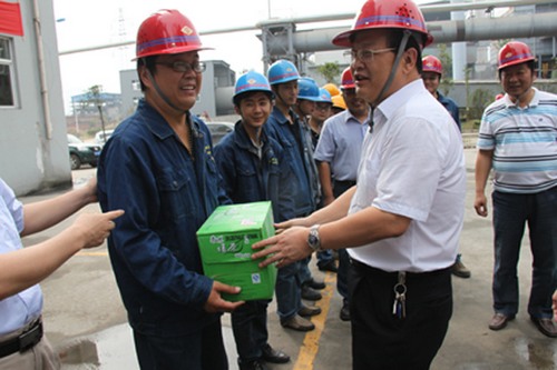 炎炎夏日,驕陽(yáng)似火,奮戰(zhàn)在基層一線的廣大干部職工牽動(dòng)著陜西煤業(yè)化工集團(tuán)公司領(lǐng)導(dǎo)們的心。近日,由集團(tuán)公司黨委副書(shū)記、工會(huì)主席馬富元帶隊(duì),集團(tuán)公司工會(huì)選擇到夏季高溫工作條件最艱苦的陜鋼集團(tuán)、建設(shè)集團(tuán)一線,開(kāi)展了“送清涼”慰問(wèn)職工活動(dòng)。