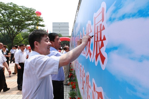隨后,與會(huì)領(lǐng)導(dǎo)和同志鄭重地在印有2012年“安全生產(chǎn)月”活動(dòng)主題“科學(xué)發(fā)展 安全發(fā)展 安全生產(chǎn) 平安生活”的宣傳牌板上簽上了自己的名字。(文字/白小紅 攝影/王世達(dá) 王貴成 劉西平)
