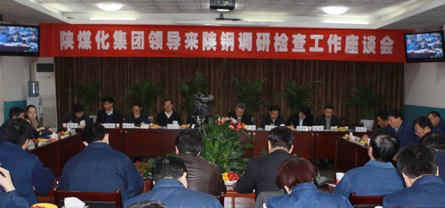 3月23日,陜西煤業(yè)化工集團公司董事長、黨委書記華煒與黨委副書記、工會主席馬富元、副總經(jīng)理尤西蒂以及集團公司有關部門負責人等一行11人,到陜鋼集團韓城基地調(diào)研指導工作,并召開了座談會。