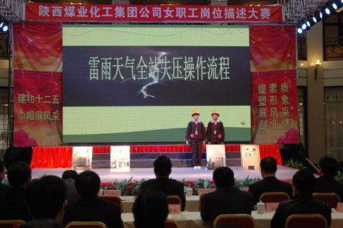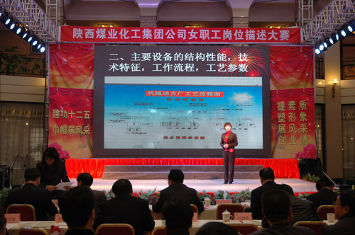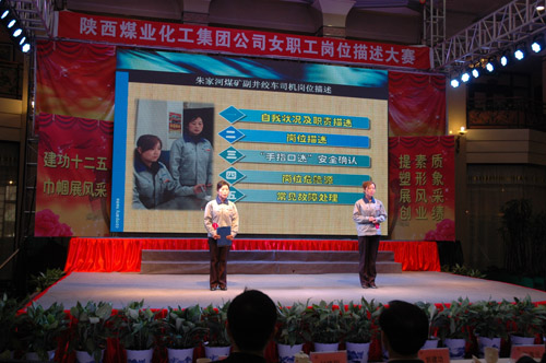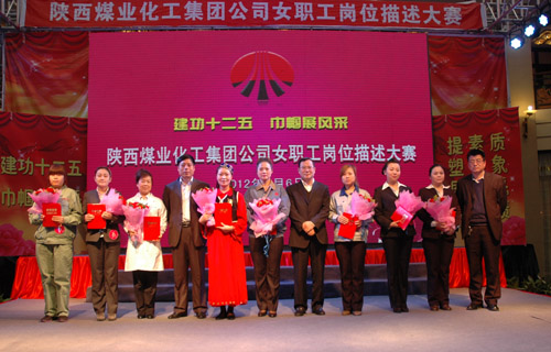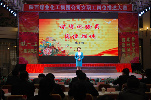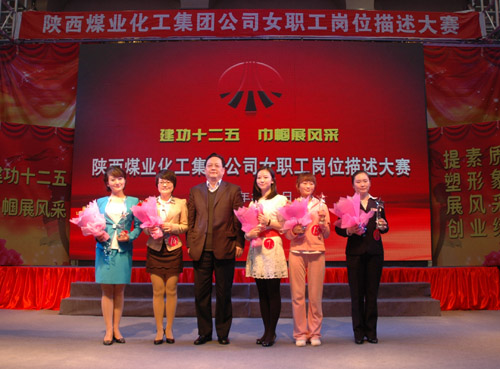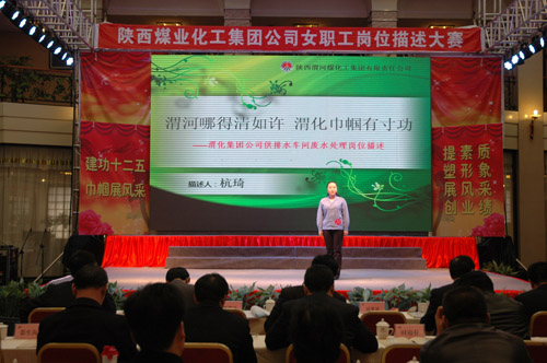 “三八”國際婦女節(jié)來臨之際,陜西煤業(yè)化工集團公司工會女職工委員會積極響應(yīng)集團公司2012年工作會上提出的強化人力資源管理,提高職工隊伍素質(zhì)的號召,于3月6日上午在渭化集團舉辦了“建功十二五?巾幗展風(fēng)采”女職工崗位描述大賽,來自22個單位21個工種崗位的28名女職工用崗位描述這個特殊形式表達(dá)她們?nèi)绾伟l(fā)揮巾幗生力軍作用、建功一流企業(yè)集團的決心和信心。陜煤化集團公司黨委副書記、工會主席馬富元,集團公司董事、渭化公司董事長、黨委書記錢嘉賓,集團公司機關(guān)黨委書記、黨群工作部部長夏迎廣,渭化公司總經(jīng)理郭建功,集團公司工會副主席付曉陽,集團人力資源部經(jīng)理李聰及渭化公司黨委副書記、紀(jì)委書記、工會主席劉智出席了本次活動。