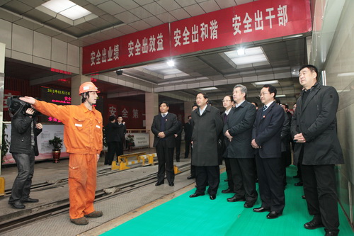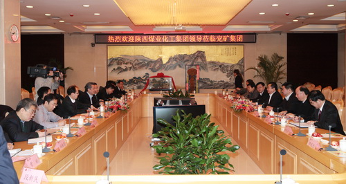 參觀邢東礦井口 16日,集團(tuán)公司董事長(zhǎng)、黨委書記華煒一行與兗礦集團(tuán)董事長(zhǎng)、黨委書記王信及該集團(tuán)相關(guān)領(lǐng)導(dǎo)座談,雙方就加強(qiáng)交流合作、增進(jìn)友誼、共同培育新的經(jīng)濟(jì)增長(zhǎng)模式廣泛交流意見。座談會(huì)上,王信介紹了該集團(tuán)公司2011年生產(chǎn)經(jīng)營(yíng)情況、2012年經(jīng)濟(jì)工作目標(biāo)和“十二五”規(guī)劃情況。他說,陜煤化集團(tuán)是陜西省的特大能源化工集團(tuán),近年來各項(xiàng)指標(biāo)突飛猛進(jìn),行業(yè)位次不斷上升。兗礦集團(tuán)作為共同參與陜北開發(fā)建設(shè)的兄弟企業(yè),雙方合作空間巨大,愿與陜煤化集團(tuán)在煤炭、煤化工領(lǐng)域加強(qiáng)交流、相互學(xué)習(xí),實(shí)現(xiàn)優(yōu)勢(shì)互補(bǔ)、互利雙贏的良好局面。華煒對(duì)兗礦集團(tuán)所取得的各項(xiàng)經(jīng)營(yíng)業(yè)績(jī)表示贊賞。同時(shí)講到,近年來,兗礦集團(tuán)經(jīng)濟(jì)效益規(guī)模取得突破,外部資源開發(fā)扎實(shí)推進(jìn),國(guó)際化建設(shè)取得新成效,特別是在培育自主創(chuàng)新能力、安全生產(chǎn)以及轉(zhuǎn)方式調(diào)結(jié)構(gòu)方面的成績(jī)和經(jīng)驗(yàn)值得學(xué)習(xí)借鑒。希望雙方加強(qiáng)交流合作,共同實(shí)現(xiàn)跨越發(fā)展。