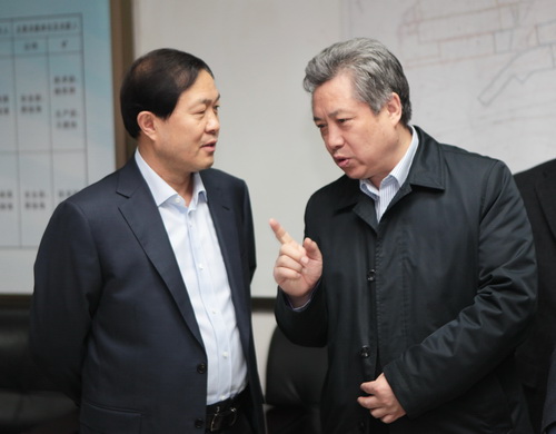集團(tuán)公司董事長(zhǎng)、黨委書記華煒與冀中能源集團(tuán)董事長(zhǎng)、黨委書記王社平(左)交流