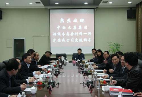 12月8日,中國(guó)大唐集團(tuán)總會(huì)計(jì)師胡繩木和大唐陜西發(fā)電有限公司總經(jīng)理侯國(guó)力、大唐河南分公司總經(jīng)理付東等一行到陜西煤業(yè)化工集團(tuán)公司走訪座談。陜煤化集團(tuán)總經(jīng)理?xiàng)钫涨隆㈥兾髅簶I(yè)股份公司總經(jīng)理宋老虎,副總經(jīng)理、陜西省煤炭運(yùn)銷集團(tuán)總經(jīng)理張福來(lái),總會(huì)計(jì)師趙福堂及集團(tuán)公司機(jī)關(guān)、陜煤股份、運(yùn)銷集團(tuán)有關(guān)人員熱情接待了大唐集團(tuán)一行。