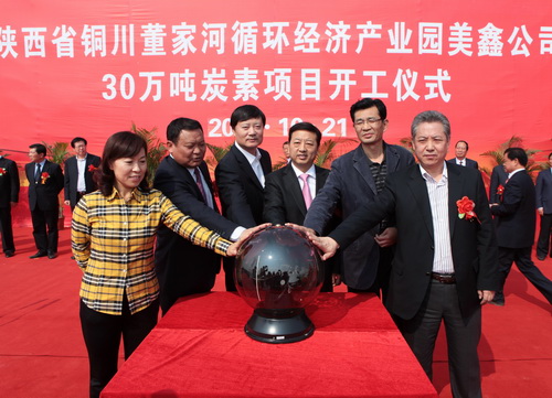 10月21號上午,總投資14.86億元的美鑫公司30萬噸炭素項目,在銅川市董家河循環(huán)經(jīng)濟產(chǎn)業(yè)園開工建設(shè)。這標志著擬投資150億元的董家河循環(huán)經(jīng)濟產(chǎn)業(yè)集群項目,正式進入全面開發(fā)建設(shè)階段。陜煤化集團董事長、黨委書記華煒,陜有色控股集團董事長黃曉平先后致辭,陜西美鑫產(chǎn)業(yè)投資有限公司董事長拓劉毅介紹項目基本情況,開工儀式由銅川市委副書記、市長王莉霞主持。