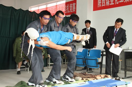 9月19日至22日,陜西煤業(yè)化工集團(tuán)公司第三屆礦山救援技術(shù)競(jìng)賽在銅川礦業(yè)公司隆重舉行,集團(tuán)公司所屬企業(yè)七支代表隊(duì)的救護(hù)指戰(zhàn)員參加了理論考試、綜合體能、模擬救災(zāi)、醫(yī)療急救、呼吸器操作、團(tuán)體和個(gè)人全能七個(gè)項(xiàng)目的激烈角逐。陜西煤礦安全監(jiān)察局總工程師高興宏,陜西省煤炭生產(chǎn)安全監(jiān)督局總工程師蔡選良,陜煤化集團(tuán)副總經(jīng)理閔龍、朱周岐,銅川礦業(yè)公司總經(jīng)理宋志剛、黨委書(shū)記黃河、副總經(jīng)理劉水利等相關(guān)領(lǐng)導(dǎo)參觀了各救護(hù)大隊(duì)圖片展、檢閱了參賽救護(hù)隊(duì)員并出席了競(jìng)賽開(kāi)幕式。各參賽單位參賽隊(duì)員、領(lǐng)隊(duì)、教練員、裁判員以及前來(lái)觀摩競(jìng)賽的省屬咸陽(yáng)市、延安市、榆林市、寶雞市、商洛市等礦山救護(hù)中隊(duì)隊(duì)員等200余人參加了競(jìng)賽活動(dòng)。