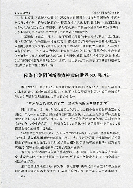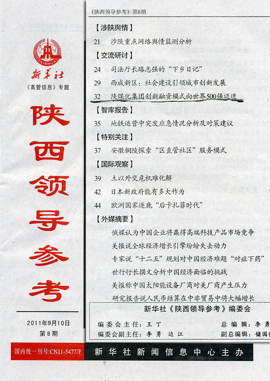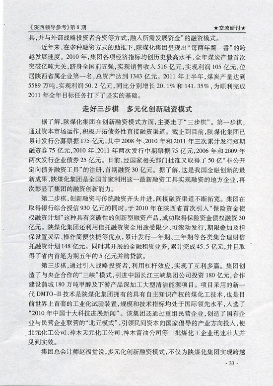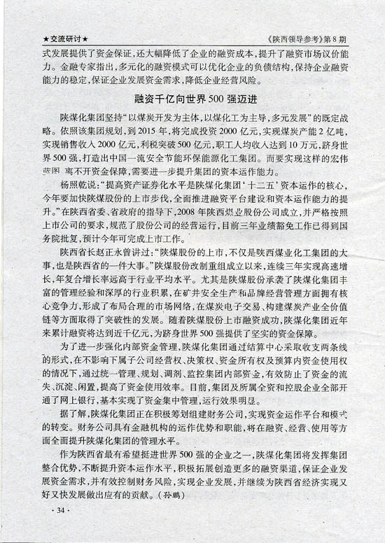 上一條:中國煤炭工業(yè)協(xié)會副會長趙岸青到陜煤化集團(tuán)調(diào)研 下一條:陜西領(lǐng)導(dǎo)參考:陜煤化集團(tuán)創(chuàng)新融資模式向世界500強(qiáng)邁進(jìn)