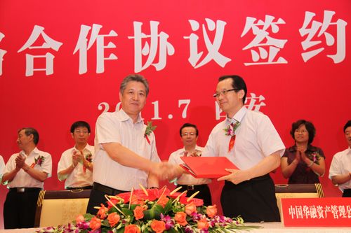 7月7日,陜西省政府與中國(guó)華融資產(chǎn)管理公司在西安簽署戰(zhàn)略合作協(xié)議,省委常委、常務(wù)副省長(zhǎng)婁勤儉和中國(guó)華融資產(chǎn)管理公司總裁賴小民分別代表雙方簽字,并分別講話。同時(shí),陜西煤業(yè)化工集團(tuán)董事長(zhǎng)華煒代表集團(tuán)公司與中國(guó)華融資產(chǎn)管理公司簽訂了戰(zhàn)略合作框架協(xié)議。