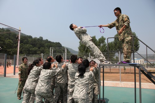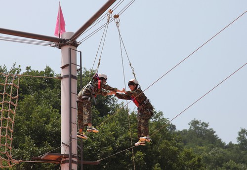 15日下午,“蛟龍隊”、“霹靂隊”、“雄鷹隊”、“金鷹隊”——這四支參訓員工編成的隊伍在訓練營開營儀式上驕傲誕生。雖然當天天氣是電閃雷鳴、風中飄雨,但四支隊伍不為所動,堅持完成了當天下午的訓練科目。隨后,16日,參訓員工在教練的指導下,各隊順利完成“高空八字橋”、“攀巖”、“ 合力過橋”、“信任背摔”、“禮讓通行”等訓練科目。在最后的“畢業(yè)墻”項目中,所有參訓員工齊心協(xié)力,相互協(xié)作,僅僅用了18分鐘就全部成功翻越4米高墻,被評為“卓越”團隊,受到了培訓教練的贊揚,充分體現(xiàn)出機關(guān)員工良好的整體素質(zhì)和團隊協(xié)作精神,也檢驗了此次訓練的成果。