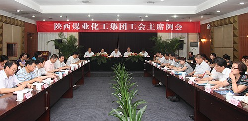 7月19日,陜西煤業(yè)化工集團(tuán)公司召開工會主席例會,認(rèn)真貫徹落實(shí)胡錦濤總書記在建黨90周年大會上的講話精神,總結(jié)回顧上半年工作,部署下半年重點(diǎn)工作。集團(tuán)公司黨委副書記、工會主席馬富元出席會議并講話,集團(tuán)公司工會各業(yè)務(wù)負(fù)責(zé)人、各基層單位工會主席、副主席及女工委主任參加了會議。