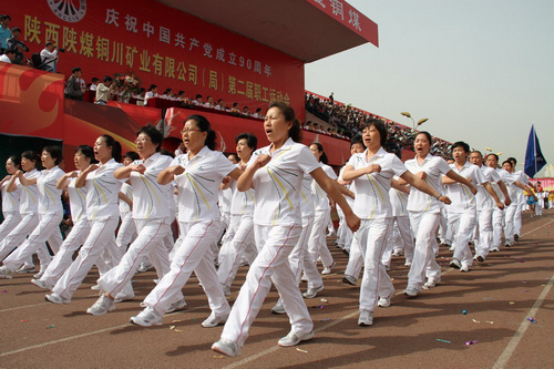 5月18日上午,慶祝中國共產(chǎn)黨成立90周年暨銅川礦業(yè)公司、銅川礦務(wù)局第二屆職工運(yùn)動會開幕式及大型文體表演在銅川市體育場隆重舉行。