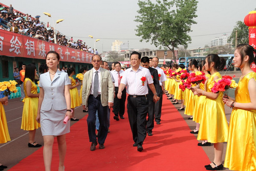 銅川礦業(yè)公司黨委書記黃河致開幕詞,他首先代表銅川礦業(yè)公司黨政工團(tuán)各級組織,向運(yùn)動會的勝利召開表示熱烈的祝賀!向蒞臨運(yùn)動會開幕式的各位領(lǐng)導(dǎo)、各位來賓表示熱烈的歡迎!向全體運(yùn)動員、教練員、裁判員和廣大干部職工致以親切的慰問!黃河指出,近年來,在陜西煤業(yè)化工集團(tuán)公司的正確領(lǐng)導(dǎo)下,在社會各界和有關(guān)方面的關(guān)心支持下,銅川礦業(yè)公司各級組織和廣大干部職工堅(jiān)持以科學(xué)發(fā)展觀為統(tǒng)領(lǐng),緊緊圍繞改革、發(fā)展和穩(wěn)定中心工作,集中精力狠抓安全生產(chǎn),全力以赴維護(hù)礦區(qū)穩(wěn)定,深入開展創(chuàng)先爭優(yōu)活動,努力創(chuàng)建“三型六化”學(xué)習(xí)型企業(yè),積極實(shí)施文化強(qiáng)企戰(zhàn)略,民生工程建設(shè)成效顯著,礦區(qū)文明建設(shè)協(xié)調(diào)發(fā)展,各項(xiàng)工作穩(wěn)步推進(jìn),樹立了良好企業(yè)形象。他說,舉辦本屆職工運(yùn)動會,是銅川礦區(qū)職工群眾文化體育生活中的一件大事、喜事,不僅是對公司“十一五”發(fā)展成果的一次大展示,也是對全公司廣大干部職工精神風(fēng)貌的一次大檢閱,更是銅煤人闊步邁上“十二五”新征程的一次大動員。同時,這次運(yùn)動會又是公司文化強(qiáng)企的一項(xiàng)盛會,更是對中國共產(chǎn)黨建黨九十周年的一份厚禮。希望全體運(yùn)動員、裁判員和工作人員,圍繞“和諧盛世、輝煌銅煤”的主題,弘揚(yáng)積極向上、勇于超越的體育精神,堅(jiān)持重在參與、重在學(xué)習(xí)、重在提高,頑強(qiáng)拼搏,公平競爭,賽出風(fēng)格,賽出水平。公司各級組織要以這次運(yùn)動會為契機(jī),廣泛發(fā)動職工群眾開展好豐富多彩的全民健身活動,進(jìn)一步增強(qiáng)企業(yè)凝聚力、向心力和戰(zhàn)斗力,激發(fā)廣大干部職工為實(shí)現(xiàn)安全與穩(wěn)定“雙零”目標(biāo),創(chuàng)建“三型六化”學(xué)習(xí)型企業(yè),建設(shè)安全、穩(wěn)定、充滿活力的和諧礦區(qū)做出新的更大貢獻(xiàn)。