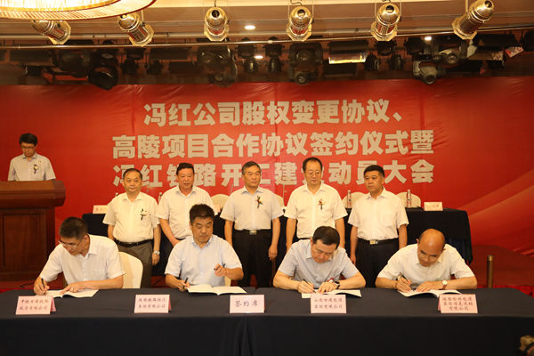 6月22日,陜西馮紅鐵路公司股權(quán)變更協(xié)議、高陵項(xiàng)目合作協(xié)議簽約儀式暨馮紅鐵路項(xiàng)目開工建設(shè)動(dòng)員大會(huì)在西安召開。陜煤集團(tuán)黨委書記、董事長(zhǎng)楊照乾,中國中鐵股份有限公司副總裁段永傳,山西世德能源集團(tuán)董事長(zhǎng)李潤(rùn)平,榆能集團(tuán)煤炭運(yùn)銷公司董事長(zhǎng)劉繼林,中鐵一局集團(tuán)有限公司總經(jīng)理馬海民,中鐵第一勘察設(shè)計(jì)院院長(zhǎng)董勇,以及馮紅鐵路公司股東單位、設(shè)計(jì)單位、參建單位,高陵項(xiàng)目合作單位的有關(guān)領(lǐng)導(dǎo)和業(yè)務(wù)負(fù)責(zé)人出席會(huì)議。會(huì)議由陜煤集團(tuán)副總經(jīng)理孫喜民主持。