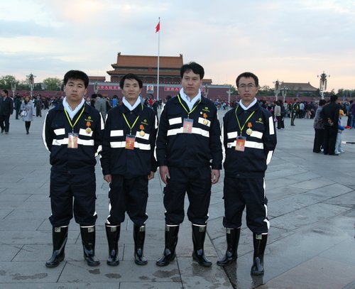 史曉波、陳百歲、張波、楊新民(由左到右)在天安門廣場合影
