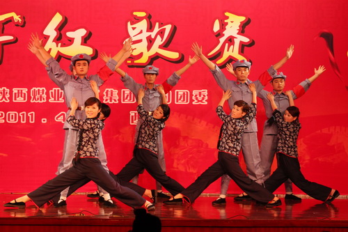 表彰會后,伴隨著一個(gè)視頻短片《大話紅歌賽》的播放,集團(tuán)公司紀(jì)念五四運(yùn)動(dòng)“運(yùn)銷杯”青年紅歌賽在輕松幽默的氛圍中拉開序幕,一個(gè)個(gè)精心打造的節(jié)目閃亮登場,一時(shí)間高潮疊起、異彩紛呈。由黃陵礦業(yè)公司選送的大合唱《陽光礦業(yè)》,以恢弘的氣勢,完美的聲線配合,唱出了當(dāng)代礦業(yè)人的豪邁與氣魄,贏得了滿堂彩;蒲白礦業(yè)公司選送的歌曲《國家》,伴以小朋友的手語舞蹈,以干凈純真的方式詮釋了“都說國很大,其實(shí)一個(gè)家”的永恒主題,深深感染了現(xiàn)場觀眾。運(yùn)銷集團(tuán)選送的紅歌聯(lián)唱《解放區(qū)的天》,聲樂配合得當(dāng),整體和諧有序,給人以振奮和美感;銅川礦業(yè)公司選送的《再唱山歌給黨聽》,創(chuàng)新填詞,更好地詮釋了當(dāng)代青年對于黨的無限熱愛。彬長礦業(yè)公司選送的擬聲音樂小品《沒有共產(chǎn)黨就沒有新中國》,創(chuàng)造性的融入了華陰老腔等音樂元素,編排新穎,特色獨(dú)具;澄合礦業(yè)公司選送的《十送紅軍》,以情景劇的方式,唯美地展示了軍民間的魚水深情,令人動(dòng)容;北元化工公司選送的《東方紅》,將人們再次帶回到激情燃燒的歲月,重溫了那一曲激勵(lì)了一代又一代的青春誓言……活動(dòng)中還特別穿插了現(xiàn)場助興文藝節(jié)目,由神南礦業(yè)公司選送的魔術(shù)《手動(dòng)奇跡》,現(xiàn)場上演了見證奇跡的時(shí)刻,澄合礦業(yè)公司選送的小品《大話梁?!?,用極度夸張的表演,針砭時(shí)弊,頌揚(yáng)了愛情之永恒。