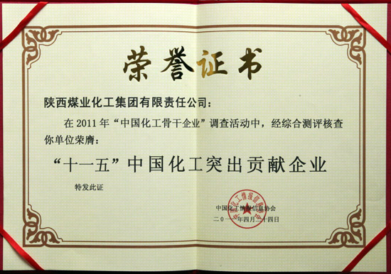 4月24日,2011中國化工骨干企業(yè)發(fā)布暨“十一五”化工突出貢獻(xiàn)企業(yè)表彰會議在浙江舟山隆重舉行。陜西煤業(yè)化工集團(tuán)公司榮膺2011中國煤化工骨干企業(yè)和“十一五”中國化工突出貢獻(xiàn)企業(yè)稱號。