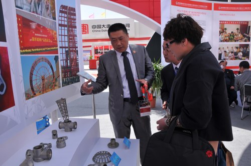 陜煤建司展臺展出的“中環(huán)”牌管接頭吸引觀眾參觀
