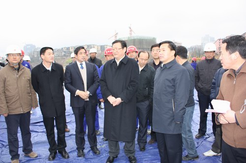 3月23日,陜西省委常委、副省長江澤林來到安康調(diào)研城市建設(shè)等方面工作。調(diào)研期間,他特意來到由陜西煤業(yè)化工集團(tuán)公司承建的安康濱江大道三期市政項(xiàng)目施工現(xiàn)場進(jìn)行視察。安康市委書記、市人大常委會(huì)主任劉建明,安康市委副書記、市長方瑋峰,副市長陳明,安康住房與城鄉(xiāng)建設(shè)局、城鄉(xiāng)規(guī)劃局等有關(guān)部門領(lǐng)導(dǎo)陪同視察。