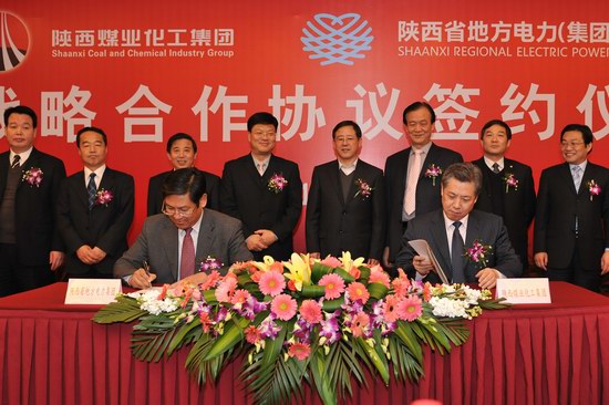 陜西煤業(yè)化工集團董事長、黨委書記華煒與陜西省地方電力(集團)有限公司董事長、總經(jīng)理戚曉耀分別代表雙方企業(yè)在戰(zhàn)略合作協(xié)議上簽字。根據(jù)協(xié)議, “十二五”期間雙方將在煤炭開發(fā)和化工、電力、電網(wǎng)等項目建設(shè)及生產(chǎn)運行方面展開合作,在項目、資本、管理等方面不斷推進深度合作,使雙方的產(chǎn)業(yè)優(yōu)勢和資源優(yōu)勢得到更好的發(fā)揮,并通過成立工作小組、建立定期聯(lián)絡(luò)等機制,加強合作交流,細(xì)化合作意向,落實合作項目,明確合作方式,充分實現(xiàn)雙方互利雙贏、共謀發(fā)展的目的。