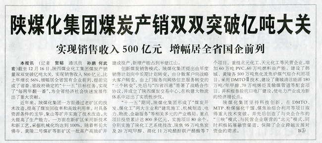 陜西日報報眼:陜煤化集團煤炭產銷雙雙突破億噸大關