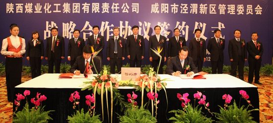 12月28日,陜西煤業(yè)化工集團(tuán)公司與咸陽市涇渭新區(qū)管委會在咸陽國貿(mào)大酒店隆重舉行戰(zhàn)略合作簽約儀式。咸陽市委書記千軍昌、市長莊長興,陜煤化集團(tuán)黨委書記、董事長華煒,總經(jīng)理高仰才,副總經(jīng)理尤西蒂、尚建選,董事吳繼亮,建設(shè)集團(tuán)領(lǐng)導(dǎo)魏效農(nóng)、楊永紅、李冰一,涇渭新區(qū)管委會主任楊占文等出席了簽約儀式。簽約儀式由咸陽市常務(wù)副市長趙潤民主持。