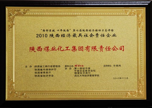 陜煤化集團獲評“2010陜西經(jīng)濟推動力總評榜”最具社會責任企業(yè)