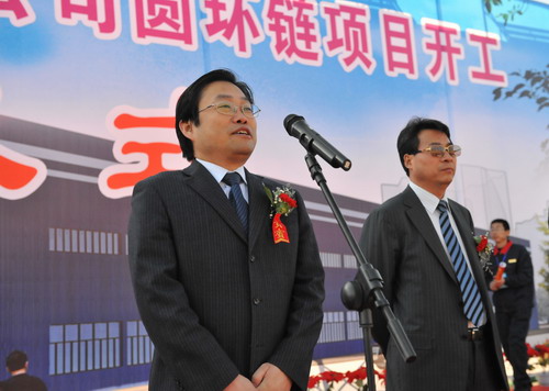 奠基開(kāi)工儀式上,西安重裝集團(tuán)董事長(zhǎng)、黨委書(shū)記王增強(qiáng)講話(huà),他代表重裝集團(tuán)對(duì)蒞臨開(kāi)工儀式的各位領(lǐng)導(dǎo)、各位嘉賓和同志們表示熱烈的歡迎,對(duì)長(zhǎng)期支持、幫助和關(guān)心重裝集團(tuán)發(fā)展的陜煤化集團(tuán)、澄合礦業(yè)公司、各兄弟單位表示衷心的感謝,對(duì)前期做了大量基礎(chǔ)調(diào)研、可研論證、項(xiàng)目準(zhǔn)備工作的有關(guān)部門(mén)和專(zhuān)家,對(duì)投入這次工程建設(shè)的設(shè)計(jì)單位、施工單位、監(jiān)理單位和項(xiàng)目管理的同志們表示親切的慰問(wèn)。他指出,圓環(huán)鏈項(xiàng)目是重裝集團(tuán)又一個(gè)重點(diǎn)投資項(xiàng)目,暨關(guān)系到澄合煤機(jī)公司的未來(lái)發(fā)展,也是重裝集團(tuán)產(chǎn)業(yè)鏈的重要環(huán)節(jié)和經(jīng)濟(jì)增長(zhǎng)點(diǎn),意義重大。他要求澄合煤機(jī)公司在項(xiàng)目建設(shè)中以重裝集團(tuán)所奉行的“用戶(hù)滿(mǎn)意、員工幸?!钡幕纠砟?,高標(biāo)準(zhǔn)、嚴(yán)要求、精心組織、科學(xué)施工、做出精品,為澄合煤機(jī)公司、重裝集團(tuán)的發(fā)展做貢獻(xiàn)。