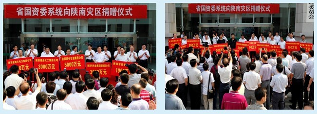 面對(duì)重大災(zāi)情,省國(guó)資委黨委高度重視,立即成立了救災(zāi)募捐活動(dòng)領(lǐng)導(dǎo)小組,在密切關(guān)注搶險(xiǎn)救災(zāi)的同時(shí),號(hào)召省國(guó)資委系統(tǒng)企業(yè)迅速行動(dòng)起來(lái),克服各種實(shí)際困難,勇于承擔(dān)社會(huì)責(zé)任,以實(shí)際行動(dòng)幫助災(zāi)區(qū)群眾渡過(guò)難關(guān),重建家園。在省國(guó)資委系統(tǒng)企業(yè)向陜南災(zāi)區(qū)捐贈(zèng)儀式上,副省長(zhǎng)、省救災(zāi)與災(zāi)后重建工作領(lǐng)導(dǎo)小組組長(zhǎng)姚引良出席捐贈(zèng)儀式并作重要講話,省國(guó)資委黨委書記、主任白阿瑩進(jìn)行捐贈(zèng)動(dòng)員。省民政廳等有關(guān)部門領(lǐng)導(dǎo)出席捐贈(zèng)儀式。共有36戶省國(guó)資委監(jiān)管企業(yè)和19戶中央駐陜企業(yè)參與了現(xiàn)場(chǎng)捐助,共募集資金1.9398億元,所捐款項(xiàng)將全部用于災(zāi)區(qū)的受災(zāi)群眾房屋以及醫(yī)院學(xué)校等設(shè)施的重建。