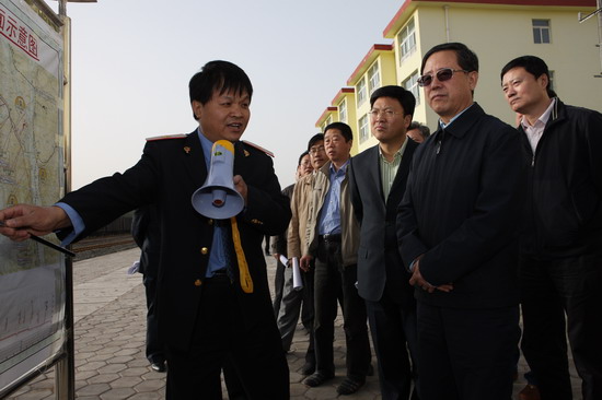 吳登昌副省長一行首先來到紅檸鐵路紅柳林車站,神南礦業(yè)公司副總經(jīng)理陳天成詳細(xì)介紹了紅檸鐵路的設(shè)計規(guī)劃和項目建設(shè)進展情況,并就紅檸鐵路建成以后的發(fā)展構(gòu)想做了簡要的匯報。