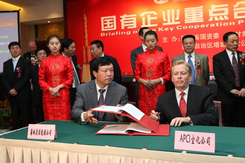 陜煤化集團蒲城清潔能源公司代表與美國空氣產(chǎn)品(中國)投資有限責(zé)任公司代表簽約投資意向書。