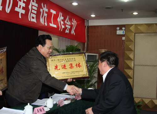 集團(tuán)公司黨委副書記馬富元為2009年信訪工作先進(jìn)集體頒發(fā)獎(jiǎng)牌