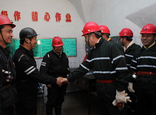 隨后,華煒又來(lái)到王村煤礦,深入井下檢查指導(dǎo)安全生產(chǎn)工作。在井下,華煒對(duì)陪同的礦領(lǐng)導(dǎo)說(shuō),煤礦是個(gè)高危的行業(yè),要把安全工作放在首位,一定要在保證安全的情況下生產(chǎn),只有保證安全才能取得最大的效益。在井下中央變電所,華煒和每個(gè)職工親切的握手問(wèn)候,詳細(xì)詢問(wèn)了他們的收入和生活情況,叮囑他們要嚴(yán)守操作規(guī)程,確保安全生產(chǎn)。 (韓宏偉何武宏)