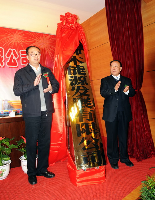 神木縣縣委書記郭寶成(左)與神木煤化工產(chǎn)業(yè)公司黨委書記、執(zhí)行董事黨會財為新成立公司揭牌。