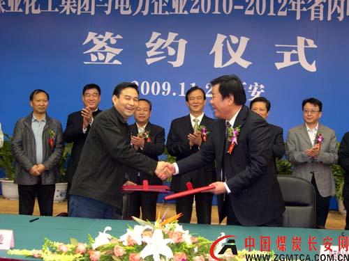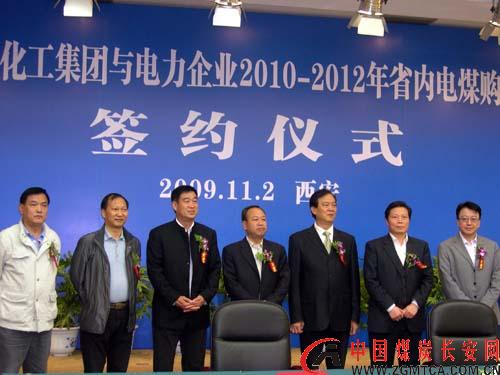 中國煤炭長安網(wǎng)訊 11月2日上午,陜西煤業(yè)化工集團(tuán)公司與省內(nèi)電力企業(yè)在陜西賓館隆重舉行了2010-2012年省內(nèi)電煤購銷合同簽約儀式。陜西省煤炭工業(yè)局、陜西省煤炭質(zhì)量檢驗(yàn)所、西安鐵路局、陜西煤業(yè)化工集團(tuán)公司、陜西省煤炭運(yùn)銷公司、大唐發(fā)電有限公司、華電陜西發(fā)電有限公司、華能陜西發(fā)電有限公司、華能陜西秦嶺發(fā)電有限公司等省內(nèi)十幾家煤、電、運(yùn)企業(yè)的領(lǐng)導(dǎo)參加了簽約儀式,陜西省發(fā)改委相關(guān)領(lǐng)導(dǎo)出席儀式并發(fā)表了重要講話。