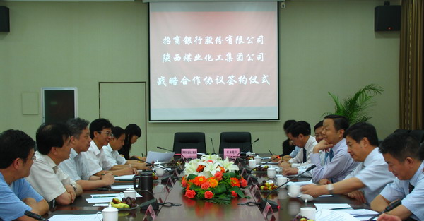 8月20日下午,招商銀行總行行長助理王慶彬、西安分行行長王冰劍帶領(lǐng)總行、分行有關(guān)人員來到陜西煤業(yè)化工集團(tuán)公司,與該集團(tuán)公司黨委書記、董事長華煒,總經(jīng)理高仰才,副總經(jīng)理尚建選,董事吳繼亮和集團(tuán)有關(guān)部門人員進(jìn)行了座談,并舉行了戰(zhàn)略合作協(xié)議簽約儀式。