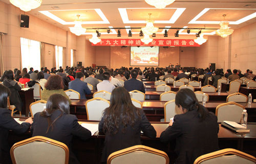 陜煤集團(tuán)下屬實(shí)業(yè)集團(tuán)、煤層氣公司、生態(tài)水泥公司、技術(shù)研究院、物資集團(tuán)、運(yùn)銷集團(tuán)等6家在研發(fā)大樓辦公單位黨委的有關(guān)領(lǐng)導(dǎo),黨群部門負(fù)責(zé)人、黨群部門工作人員以及其他機(jī)關(guān)黨員干部群眾共200余人參加了宣講報告會。