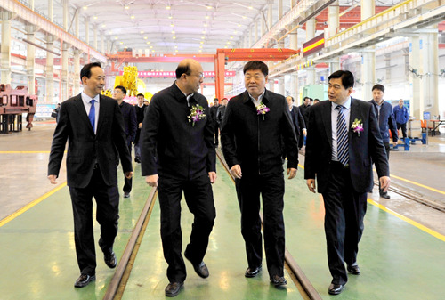 與會(huì)領(lǐng)導(dǎo)現(xiàn)場(chǎng)參觀西煤機(jī)公司生產(chǎn)加工車(chē)間