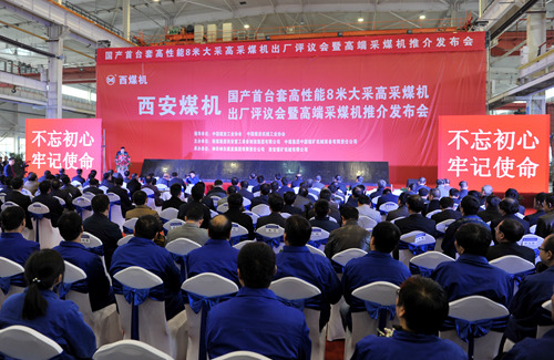 11月16日上午,由陜煤重裝西安煤礦機(jī)械有限公司和神華神東煤炭集團(tuán)公司合作完成的國(guó)產(chǎn)首臺(tái)套高性能8米大采高采煤機(jī)出廠(chǎng)評(píng)議會(huì)暨高端采煤機(jī)推介發(fā)布會(huì)在西煤機(jī)公司召開(kāi)。中國(guó)煤炭工業(yè)協(xié)會(huì)副會(huì)長(zhǎng)彭建勛、陜西煤業(yè)化工集團(tuán)公司總經(jīng)理嚴(yán)廣勞、副總經(jīng)理閔龍、尚建選,中國(guó)煤炭機(jī)械工業(yè)協(xié)會(huì)會(huì)長(zhǎng)張勇、中國(guó)科學(xué)院院士何滿(mǎn)潮、中國(guó)工程院院士王國(guó)法、陜西省科技廳副廳長(zhǎng)趙懷斌、陜西省工業(yè)與信息化廳副廳長(zhǎng)蘭建文、神華神東煤炭集團(tuán)公司董事長(zhǎng)楊鵬、西安重工裝備制造集團(tuán)有限公司董事長(zhǎng)李德鎖、黨委書(shū)記向新剛,中國(guó)中煤能源股份有限公司副總裁、中國(guó)煤礦機(jī)械裝備有限責(zé)任公司執(zhí)行董事濮津,來(lái)自國(guó)內(nèi)煤炭行業(yè)的企業(yè)和高等院校的領(lǐng)導(dǎo)、專(zhuān)家,以及中國(guó)煤炭報(bào)、陜西日?qǐng)?bào)、陜西電視臺(tái)等新聞媒體出席了會(huì)議。