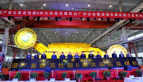 會(huì)上,中國(guó)煤炭工業(yè)協(xié)會(huì)組織的專(zhuān)家評(píng)議委員會(huì)聽(tīng)取了項(xiàng)目組技術(shù)匯報(bào),審查了相關(guān)技術(shù)文件。經(jīng)過(guò)質(zhì)疑、答辯和討論,一致認(rèn)為,西煤機(jī)公司研制的高性能8米大采高采煤機(jī),屬?lài)?guó)內(nèi)首創(chuàng),整體性能指標(biāo)達(dá)到國(guó)際先進(jìn)水平,可滿(mǎn)足8米大采高工作面開(kāi)采需求,同意通過(guò)出廠(chǎng)評(píng)審并進(jìn)行井下工業(yè)性試驗(yàn)。