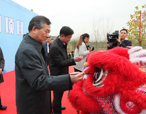 開工儀式上,楊照乾和范九利共同為該項目開工醒獅點睛,標(biāo)志著項目正式開工。